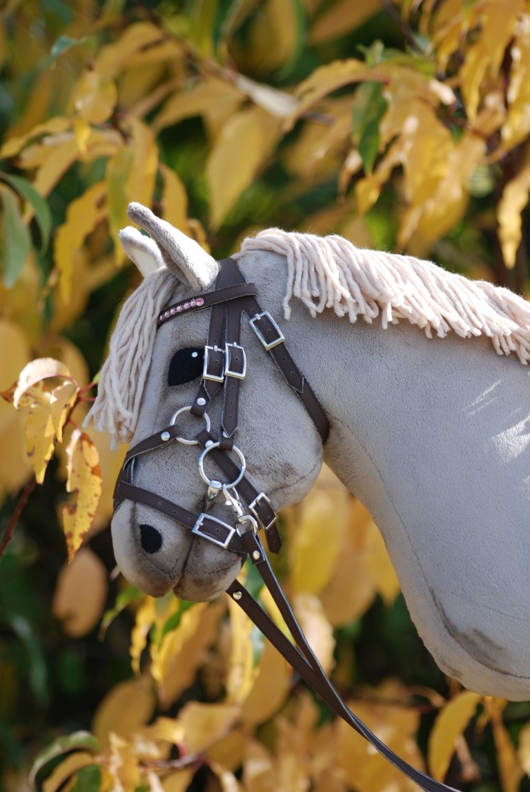 Reithalfter aus Kunstleder genäht mit Gebiss hochglanz verchromt und Zügel.