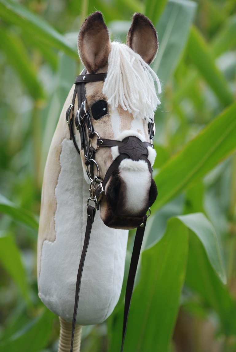 Reithalfter aus Kunstleder genäht mit Gebiss hochglanz verchromt und Zügel.