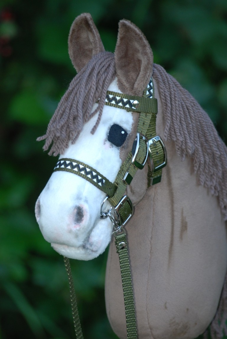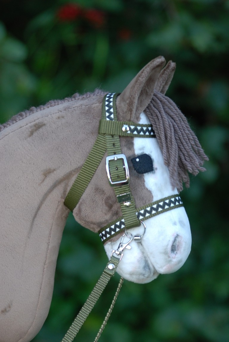 Sporthalfter aus Gurtband mit Gebiss hochglanz verchromt und Zügel.